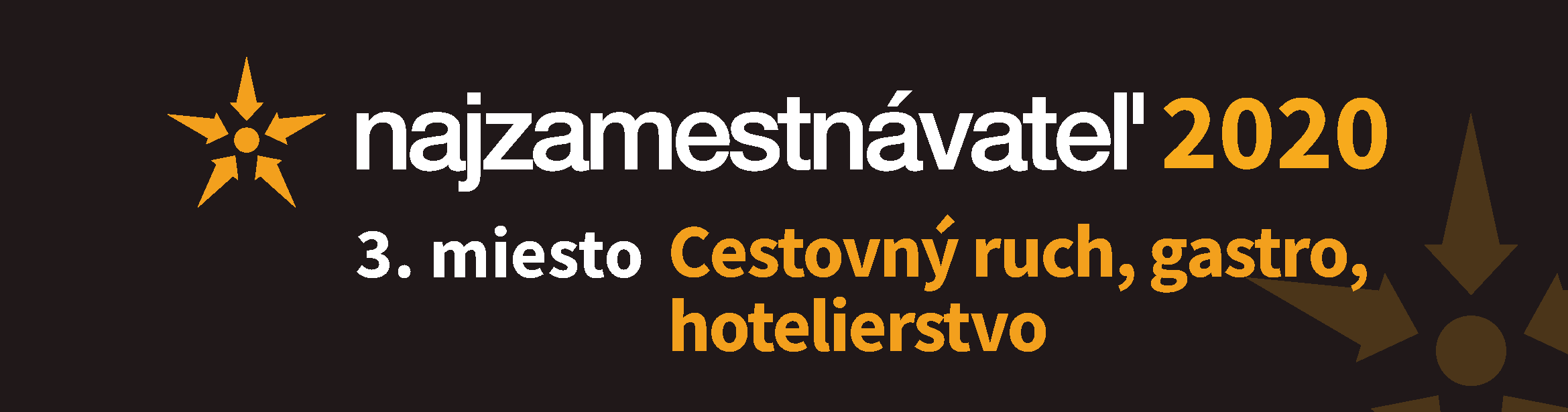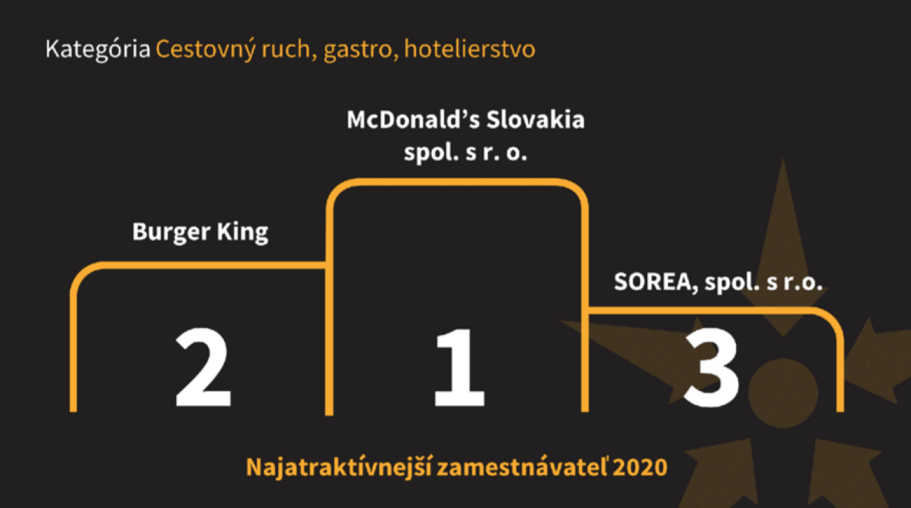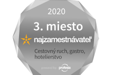 Uvedomujeme si, že práve spokojní zamestnanci dokážu vytvoriť príjemné prostredie pre vás, našich zákazníkov. O to viac nás teší nové ocenenie, a to 3. miesto v rebríčku naj zamestnávateľ 2020 v kategórií Cestovný ruch, gastro, hotelierstvo. Umiestnili sme sa tak v TOP trojke spolu so silnými zahraničnými značkami zvučných mien.