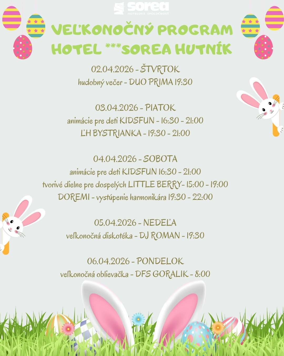 - sprievodný animačný program počas veľkonočných sviatkov